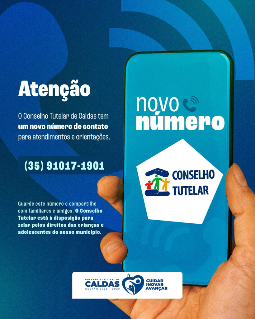 Novo número de contato do Conselho Tutelar de Caldas: 📞 (35) 91017-1901 O Conselho Tutelar atua na proteção e garantia dos direitos de crianças e adolescentes. Anote e compartilhe este número. #PrefeituraDeCaldas #CaldasMG #ConselhoTutelar #ProteçãoInfantil #cuidarinovaravançar