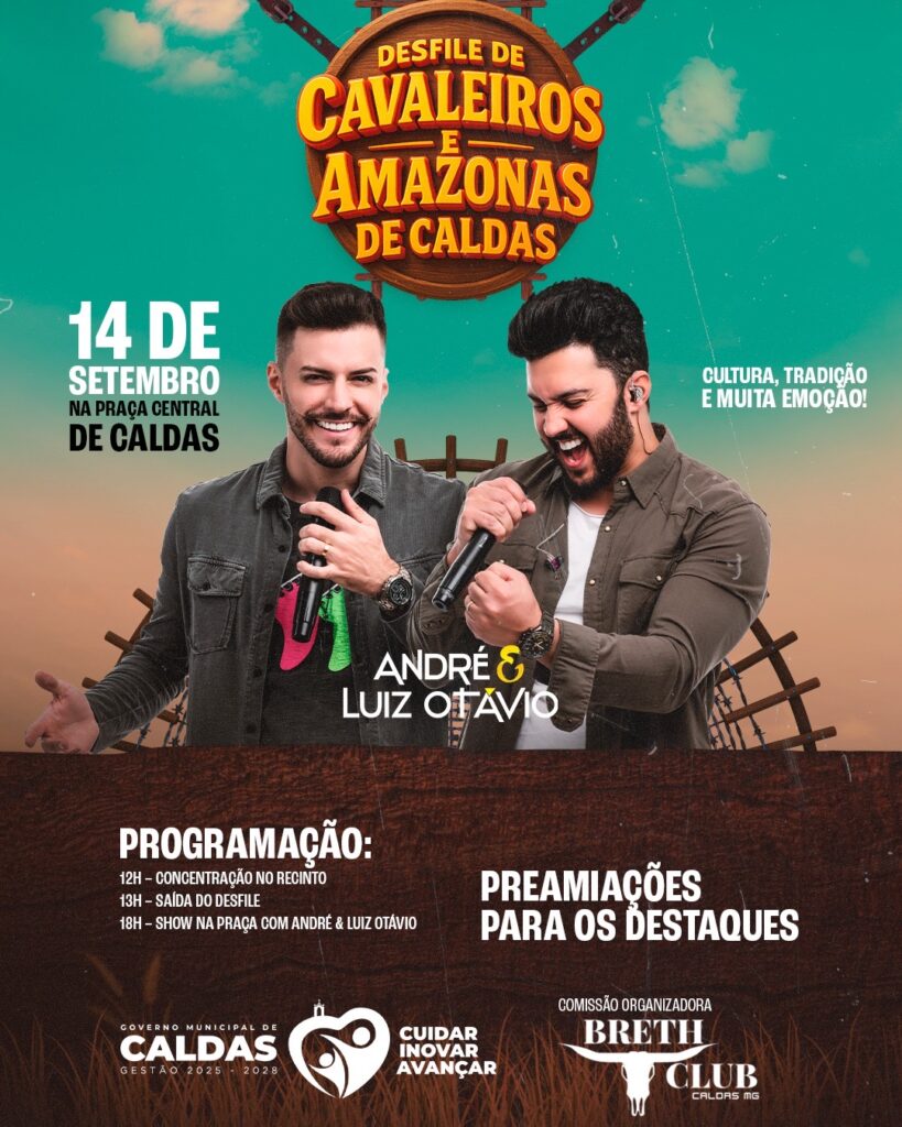 A Praça Central de Caldas será palco de um grande desfile com a participação de cavaleiros, amazonas e animais. Valorização da nossa cultura! 📍 A concentração começa ao meio-dia, no recinto de eventos e às 13h, haverá o desfile pelo centro da cidade. 🎶 E para encerrar com chave de ouro, às 18h, show gratuito […]