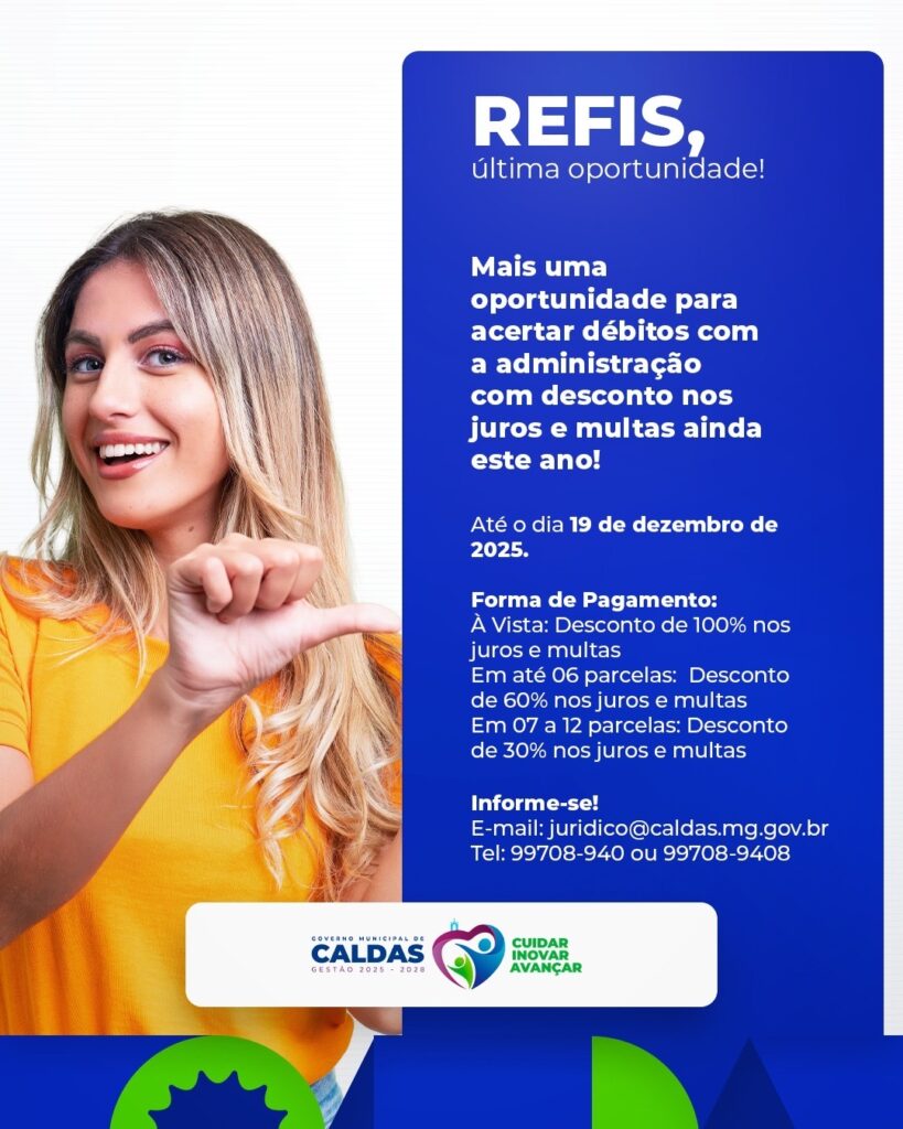 A Prefeitura de Caldas oferece uma nova oportunidade para regularização de débitos com condições especiais até 19 de dezembro de 2025.