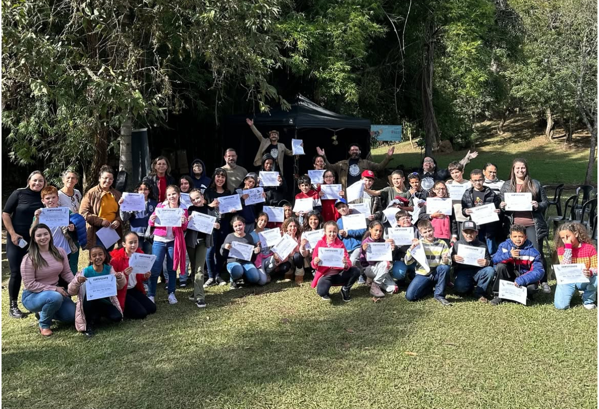 A manhã começou com uma caminhada ecológica pelo parque do Balneário, onde os alunos puderam se conectar com a natureza. Depois, a diversão continuou com uma oficina interativa de perguntas e respostas, cheia de aprendizado, desafios e brindes para quem mandou bem! 🏆✨