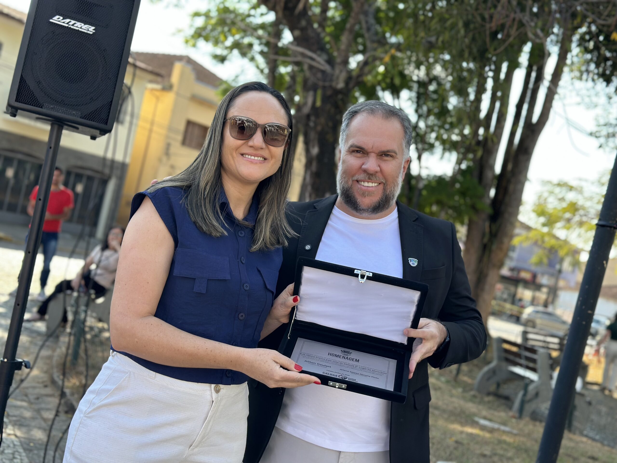 A Escola Municipal Mauro Franco, do distrito de São Pedro de Caldas, recebeu o prêmio pela melhor nota geral no SIMAVE, garantindo o 1º lugar no município. Representando a instituição, a coordenadora Greice Aparecida Fernandes Carvalho foi homenageada e destacou a importância da união entre família e escola para os avanços na aprendizagem.